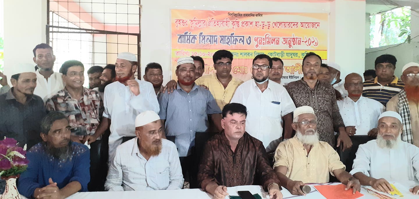 কুমিল্লা প্রতিনিধি: বৃহত্তর কুমিল্লার ঐতিহ্যবাহী হা-ডু-ডু খেলোয়ারদের উদ্যোগে বার্ষিক মিলাদ ও পুনর্মিলনী অনুষ্ঠান ২০২১ অনুষ্ঠিত হয়েছে। গত ১৫ অক্টোবর শুক্রবার সকাল ১১টায় কুমিল্লা শালবন বিহারে (কুমিল্লা জাদুঘর) ক্লাবের সভাপতি ১নং কালির বাজার ইউনিয়ন পরিষদের চেয়ারম্যান মোঃ সেকান্দর আলী চেয়ারম্যান এর সভাপতিত্বে অনুষ্ঠানে বক্তব্য রাখেন ক্লাবের সহ সভাপতি শামসুল চেয়ারম্যান, সাধারণ সম্পাদক মাষ্টার মমিনুল ইসলাম মোহন, সাংগঠনিক সম্পাদক নুরুল ইসলাম (পদুয়া বরুড়া), আবদুস সালাম, মোঃ জোবায়ের হোসেন, মোর্শেদ আলম মেম্বার, মানবাধিকার কর্মী মোঃ শাহজাহান মাল, মোঃ সুরুজ মিয়া প্রমুখ। বক্তারা বৃহত্তর কুমিল্লা ঐতিহ্যবাহী হা-ডু-ডু খেলাটি ধরে রেখে সমাজের যুব সমাজকে মাদক সহ অসামাজিক কার্যকলাপ থেকে বিরত রাখতে ঐতিহ্যবাহী খেলাটি ধরে রাখার বিষয়ে দিনব্যাপী আলোচনা করেন। জুমার নামাজের পর মধ্যার্ণভোজ শেষে সভাপতির সমাপনী বক্তব্যের মধ্য দিয়ে অনুষ্ঠান শেষ হয়।