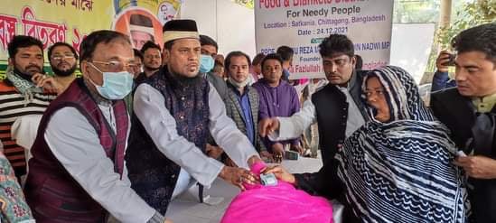 আল্লামা ফজলুল্লাহ ফাউন্ডেশন উদ্যোগে সাতকানিয়া ও লোহাগাড়া উপজেলায় পৃথকভাবে গরীব, দুঃস্থ ও অসহায় পরিবারের মাঝে খাদ্য সামগ্রী ও শীতবস্ত্র বিতরণ করা হয় ২৪ ডিসেম্বর শুক্রবার। সকাল ১০ টায় সাতকানিয়া মডেল হাই স্কুল মাঠে সাতকানিয়া পৌরসভা এলাকার পাঁচশত গরীব, দুঃস্থ ও অসহায় পরিবারের মাঝে খাদ্য সামগ্রী ও শীতবস্ত্র বিতরণ করেন আল্লামা ফজলুল্লাহ ফাউন্ডেশনের প্রতিষ্ঠাতা চেয়ারম্যান চট্টগ্রাম-১৫ আসেন মাননীয় সাংসদ প্রফেসর ড. আবু রেজা মুহাম্মদ নেজামুদ্দিন নদভী। এই সময় উপস্থিত ছিলেন সাতকানিয়া উপজেলা আওয়ামীলীগের সভাপতি ও উপজেলা চেয়ারম্যান এম এ মোতালেব সিআইপি, সাতকানিয়া পৌরমেয়র মোহাম্মদ জোবায়ের, সাতকানিয়া উপজেলা সহকারী কমিশনার (ভূমি) সজীব কান্তি রুদ্র, সাতকানিয়া থানা ভারপ্রাপ্ত কর্মকর্তা আনোয়ার হোসেন, সাতকানিয়া উপজেলা আওয়ামী লীগের সহ-সভাপতি মোজাম্মেল হক, চট্টগ্রাম জেলা পরিষদ সদস্য জসিম উদ্দিন, আবুল কালাম, খোকন নন্দী, সাতকানিয়া উপজেলা আওয়ামী যুবলীগের আহবায়ক সাইদুর রহমান দুলাল, সিনিয়র যুগ্ম আহবায়ক আ.ন.ম সেলিম চৌধুরী, হারেজ মুহাম্মদ, সাতকানিয়া পৌর যুবলীগের সভাপতি মোহাম্মদ আনিছ, সাধারণ সম্পাদক জাবেদ ইকবাল, কমিশনার মোহাম্মদ রাসেল, মুহাম্মদ আরফাত, মোহাম্মদ আরিফ, পৌর ছাত্রলীগের আহবায়ক মোহাম্মদ ইদ্রিছ প্রমুখ। লোহাগাড়া উপজেলা আমিরাবাদ ইউনিয়ন পরিষদ কমপ্লেক্স মাঠে প্রফেসর ড. আবু রেজা মুহাম্মদ নেজামুদ্দিন নদভী এমপি’র পক্ষে বিকাল ৩টায় চারশত পঞ্চাশ গরীব, দুঃস্থ ও অসহায় পরিবারের মাঝে বিতরণ করেন লোহাগাড়া উপজেলা আওয়ামী লীগের সাধারণ সম্পাদক সালাউদ্দিন হিরু, উপজেলা আওয়ামী লীগ নেতা এইচ এম গনি সম্রাট, উপজেলা শ্রমিক লীগের সভাপতি নুরুল হক নুনু, লোহাগাড়া উপজেলা যুবলীগের আহবায়ক জহির উদ্দিন, মিজানুর রহমান মিজান, আমিরাবাদ ইউনিয়ন পরিষদের চেয়ারম্যান মোহাম্মদ ইউনুচ, আধুনগর ইউনিয়ন পরিষদের চেয়ারম্যান নাজিম উদ্দীন, যুবনেতা মুহাম্মদ ওবায়েদ, উপজেলা ছাত্রলীগের সভাপতি আসিফ ইফতেখার প্রমুখ।