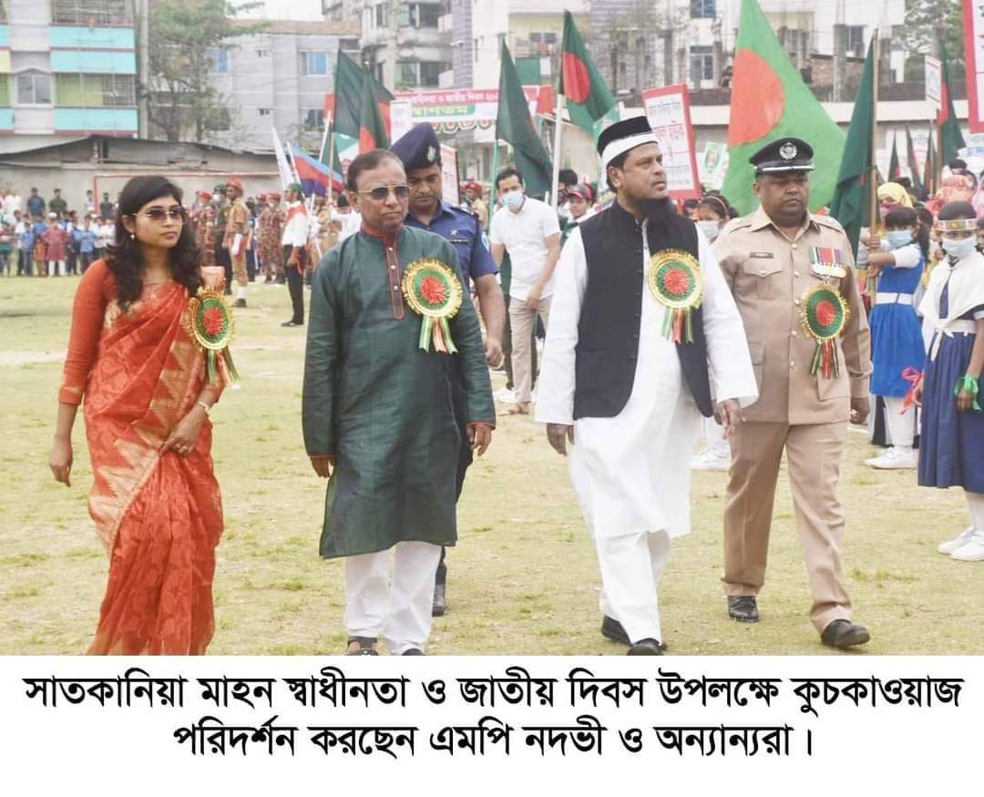 মহান স্বাধীনতা ও জাতীয় দিবস’২২ উপলক্ষ্যে সাতকানিয়া উপজেলা প্রশাসন এর উদ্যোগে দিনব্যাপি বিভিন্ন কর্মসূচীর আয়োজন করা হয়। কর্মসূচীর মধ্যে পুষ্পস্তবক অর্পন, ৩১বার তোপধ্বনির মাধ্যমে দিবসের সূচনা, সূর্যদয়ের সাথে সাথে সকল সরকারি বেসরকারি প্রতিষ্টানে জাতীয় পতাকা উত্তোলন, পুলিশ, আনসার—ভিডিপি, বি.এনসিসি, ফায়ার সার্ভিস ও সিভিল ডিফেন্স, স্কুল কলেজ মাদ্রাসা সহ বিভিন্ন শিক্ষা ও সামাজিক প্রতিষ্ঠানের শিশু—কিশোর সংগঠন স্কাউট, রোভার স্কাউট, গার্লস গাইড এর অংশ গ্রহণের মাধ্যমে কুচকাওয়াজ, ক্রীড়া অনুষ্ঠান, চিত্রাঙ্কন প্রতিযোগিতা, আলোচনা অনুষ্ঠান, দোয়া প্রার্থনা, রোগী ও এতিমদের মধ্যে উন্নত খাবার পরিবেশন, প্রীতি ফুটবল ম্যাচ ও সাংস্কৃতিক অনুষ্ঠান। গত ২৬শে মার্চ শনিবার সকাল ৮ টায় উপজেলা নির্বাহী অফিসার ফাতেমা—তুজ—জোহরা’র সভাপতিত্বে ও উপজেলা মাধ্যমিক শিক্ষা অফিসার মোঃ আজিম শরিফের সঞ্চালনায় সাতকানিয়া মডেল হাইস্কুলে মাঠে কুচকাওয়াজ অনুষ্ঠানে প্রধান অতিথি হিসেবে উপস্থিত থেকে কুচকাওয়াজের সালাম গ্রহণ করেন চট্টগ্রাম—১৫ আসনের মাননীয় সংসদ সদস্য প্রফেসর ড. আবু রেজা মু. নেজামুদ্দীন নদভী এমপি। বিশেষ অতিথি হিসেবে উপস্থিত ছিলেন সাতকানিয়া উপজেলা পরিষদ চেয়ারম্যান এম.এ মোতালেব সিআইপি, পৌরসভার মেয়র মোহাম্মদ জোবায়ের, উপজেলা মুক্তিযোদ্ধা কমান্ডার আব তাহের এলএমজি, সহকারি কমিশনার ভূমি রাজিব কান্তি রুদ্র, উপজেলা পরিষদের ভাইস চেয়ারম্যান সালাহ উদ্দিন হাসান চৌধুরী, মহিলা ভাইস চেয়ারম্যান আনজুমন আরা, সাতকানিয়া থানার অফিসার ইনচার্জ তারেক মোহাম্মদ আবদুল হান্নান, দক্ষিণ জেলা আওয়ামীলীগের প্রচার ও প্রকাশনা সম্পাদক আবছার নুরুল আবছর চৌধুরী, উপজেলা কৃষি অফিসার প্রতাপ চন্দ্র রায়, প্রাণীসম্পদ কর্মকর্তা ডা: আবুল কালাম আজাদ, মৎস্য কর্মকর্তা সৈকত শর্মা, সমাজসেবা কর্মকর্তা মোহাম্মদ রিজুয়ান উদ্দিন, উপজেলা প্রকৌশলী পারভেজ সরওয়ার হোসেন, সমবায় অফিসার দিদারুল আলম, পৌরসভা যুবলীগের সভাপতি আনিচুর রহমান, সাধারণ সম্পাদক জাবেদ ইকবাল, পৌর মানবাধীকার কমিশনের সহ—সভাপতি মামুনুল হক, সাতকানিয়া সরকারি কলেজ ছাত্রলীগের সাবেক সভাপতি কামাল উদ্দিন, পৌরসভা ছাত্রলীগের আহবায়ক মো: ইদ্রিচ, ছাত্রনেতা মোহাম্মদ এনামুল হক প্রমুখ। কুচকাওয়াজ অনুষ্ঠানে বিভিন্ন শিক্ষা প্রতিষ্টান মুক্তিযুদ্ধ শারিরীক কসরত প্রদর্শনী প্রদশন করেন। সন্ধ্যায় এক মৌনোজ্ঞ সাংস্কৃতিক অনুষ্টানের মাধ্যমে অনুষ্ঠানের সমাপ্তি ঘোষনা করা হয়।