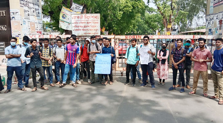 সোমবার (২৮ মার্চ) দুপুর ১টায় বিশ্ববিদ্যালয়ের জিরো পয়েন্টে অবস্থান নিয়ে আন্দোলন করেন তারা।