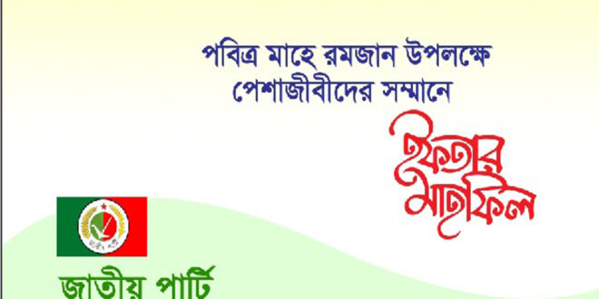 আজ ২৮ এপ্রিল রোজ বৃহস্পতিবার পবিত্র মাহে রমজান উপলক্ষে জাতীয় পার্টি সিলেট জেলা ও মহানগরের উদ্যোগে পেশাজীবীদের সম্মানে এক ইফতার মাহফিলের আয়োজন করা হয়েছে। উক্ত অনুষ্ঠানে প্রধান অতিথি হিসেবে উপস্থিত থাকবেন জাতীয় পার্টির কো-চেয়ারম্যান দয়াল কুমার বড়ূয়া। এছাড়াও প্রধান বক্তা হিসেবে উপস্থিত থাকবেন সিলেট জেলা আইনজীবী সমিতির সভাপতি এডভোকেট মো. শামসুল হক। বিশেষ অতিথি হিসেবে উপস্থিত থাকবেন সিলেট জেলা আইনজীবী সমিতির সাধারণ সম্পাদক মাহফুজুর রহমান, জাতীয় পার্টির যুগ্ম মহাসচিব মেজর (অবঃ) সিকদার আনিসুর রহমান ও মেজর (অবঃ) শিবলী মোহাম্মদ সাদেক।