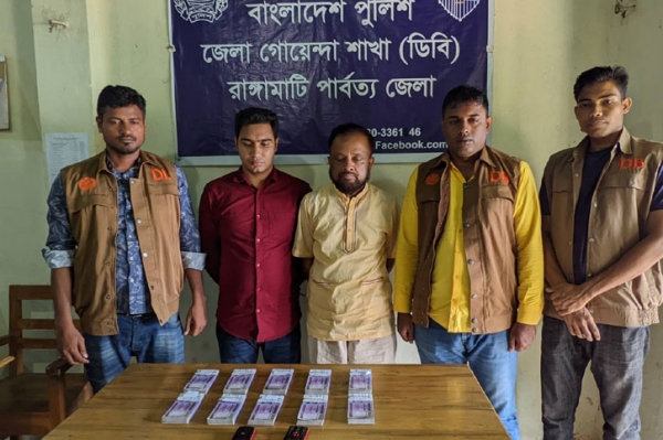 রাঙামাটিতে ১০ লাখ টাকার জাল নোটসহ দুইজনকে আটক করেছে জেলা গোয়েন্দা শাখা (ডিবি)। এসময় ডিবির উপস্থিতি টের পেয়ে সঙ্গে থাকা আরো দুইজন সহযোগী পালিয়ে যায়।