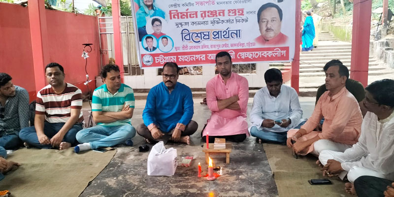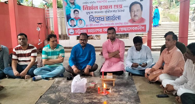 মহানগর স্বেচ্ছাসেবক লীগের সভাপতি দেবাশীষ নাথ দেবু ও সাধারণ সম্পাদক আজিজুর রহমান আজিজের নির্দেশনায় সোমবার (১৩ জুন) নগরীর আন্দরকিল্লার রাজা পুকুরের শ্রী শ্রী লোকনাথ মন্দিরে এ প্রার্থনা অনুষ্ঠিত হয়।