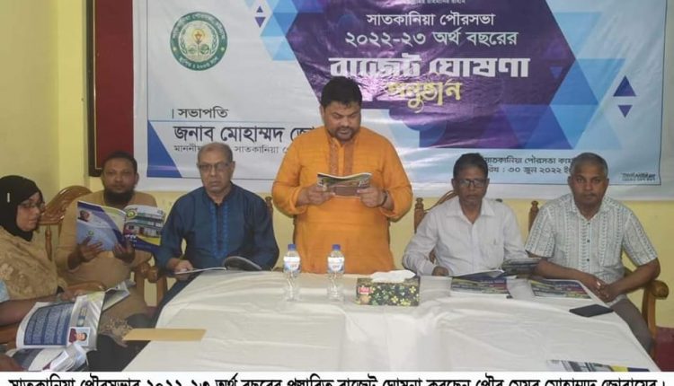 সাতকানিয়া পৌরসভার জনগণের আশা আখাংকার প্রতিফলন হয় মত বাজেট ঘোষনা করেছেন পৌর মেয়র মোঃজোবায়ের। আজ ৩০শে জুন(বৃহস্পতিবার) সকাল ১১টায় সাতকানিয়া পৌরসভা চত্বরে এক অনুষ্ঠানের মাধ্যমে ৫৮,৪৩,৪৬,৫১০(আটান্ন কোটি তেতাল্লিশ লক্ষ ছেচল্লিশ হাজার পাঁচশত ১০টাকা) বাজেট ঘোষনা হয়। সাতকানিয়া পৌরসভার মেয়র মোঃ জোবায়ের ঘোষিত বাজেটের বাস্তবায়ন কিভাবে করা হবে, তারও একটা ফিরিস্তি তোলে ধরা হয় আয়োজিত বাজেট ঘোষনা অনুষ্ঠানে। পরে মেয়র জোবায়েরের লিখিত বক্তব্যে ওঠে আসে ঘোষিত সাতকানিয়া পৌরসভার বাজেট কোন কোন খাত থেকে আয় হয়ে এবং কোন কোন খাতে ব্যয় করা হবে।