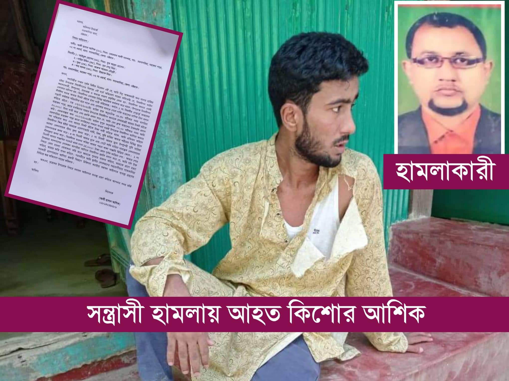 আহত কিশোরের নাম আলী হাসান আশিক তিনি সাতকানিয়া উপজেলা আওয়ামী লীগের সাবেক সাংগঠনিক সম্পাদকও প্রবীননেতা কোরবান আলী বাদশার ছেলে বলে জানা যায়।