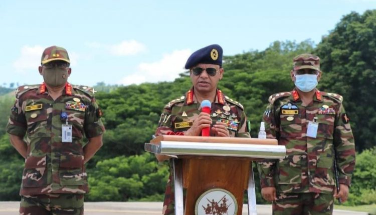 পবিত্র ঈদুল আজহা উপলক্ষে খাগড়াছড়ি রিজিয়নের বাঘাইহাট জোন ও দীঘিনালা জোনের পাংখোয়া পাড়া ক্যাম্প পরিদর্শন করেছেন সেনাবাহিনী প্রধান জেনারেল এসএম শফিউদ্দিন আহমেদ। রবিবার (১০ জুলাই) জোন পরিদর্শনকালে সৈনিকদের সাথে ঈদের শুভেচ্ছা বিনিময় করেন তিনি। দুপুর ১২টায় সেনাপ্রধান বাঘাইহাট জোনে আসলে তাকে অভ্যর্থনা জানান, ২৪ পদাতিক ডিভিশনের জেনারেল অফিসার কমান্ডিং (জিওসি) মেজর জেনারেল মো. সাইফুল আবেদীন ও খাগড়াছড়ির রিজিয়ন কমান্ডার বিগ্রেডিয়ার জেনারেল জাহাঙ্গীর আলম। পরিদর্শনকালে সেনাপ্রধান সকল সেনা সদস্যের সঙ্গে ঈদের শুভেচ্ছা এবং কুশলাদি বিনিময় করেন। এসময় সেনাপ্রধান বলেন, “জীবনের ঝুঁকি নিয়ে দূর্গম পার্বত্য চট্টগ্রামে সেনা সদস্যরা দায়িত্ব পালন করছে। তারা পরিবার স্বজন ছেড়ে পাহাড়ের দূর্গম এলাকায় দেশের নিরাপত্তায় কাজ করছে। দেশের যেকোন সংকটে সেনাবাহিনীর তার অর্পিত দায়িত্ব পালন করছে। এ সময় তিনি দুই ক্যাম্পেই গাছের চারা রোপণ করেন। পাশাপাশি দীঘিনালা জোনে সেনা সদস্যদের সঙ্গে ঈদ উপলক্ষে আয়োজিত প্রীতিভোজে অংশ নেন। পরিদর্শনকালে সামরিক গোয়েন্দা সংস্থার প্রধান মেজর জেনারেল খালেদ আল-মামুন, জিওসি ২৪ পদাতিক ডিভিশন ছাড়াও সেনা সদরের ঊর্ধ্বতন কর্মকর্তারা উপস্থিত ছিলেন।