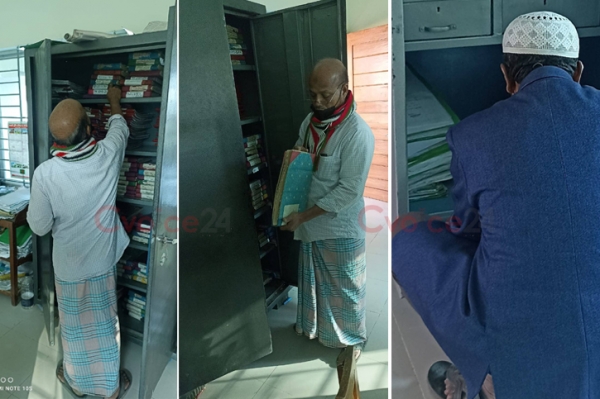 সোমবার (২৫ জুলাই) উপজেলা ভূমি অফিস ঘুরে দেখা গেছে, রেকর্ড রুমের আলমারি থেকে ফাইলপত্র বের করে আনছেন দালালরা। সবার সামনে আলমারি থেকে ফাইলপত্র নিয়ে দালালরা বেরিয়ে গেলেও নিশ্চুপ কর্মকর্তা-কর্মচারীরা।
