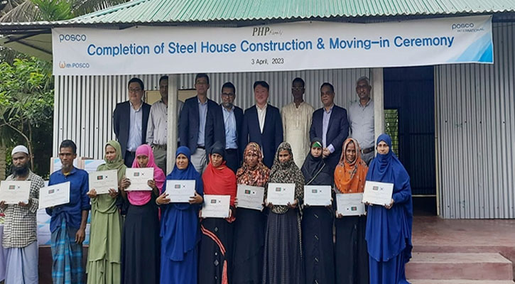 উল্লেখ্য, পসকো-পিএইচপি ফ্যমিলি হতদরিদ্রের জন্য লোহা, কংক্রিট ও রঙিন ঢেউটিনের তৈরি ৬০০ বর্গফুটের ঘর তৈরি করে দিচ্ছে। তিন কক্ষের প্রতিটি ঘরে দুটি শোবার কক্ষ, মাঝখানে একটি বসার কক্ষ, সামনে একটি বারান্দা এবং একটি বাথরুম রাখা হয়েছে। এই কাঠামোর বাইরে আছে একটি রান্নাঘর। নিজের জমি আছে কিন্তু দরিদ্র আর বাড়ি নির্মাণের সামর্থ্য নেই এমন পরিবারকে বাছাই করে বাড়ি নির্মাণ করে দেওয়া হয়েছে। প্রতিটি ঘর নির্মাণ করতে খরচ পড়েছে চার লাখ ৭০ হাজার টাকা। এর আগে গত ডিসেম্বরে একই এলাকায় ৫টি ঘর তৈরি করে হস্তান্তর করা হয়েছিল।