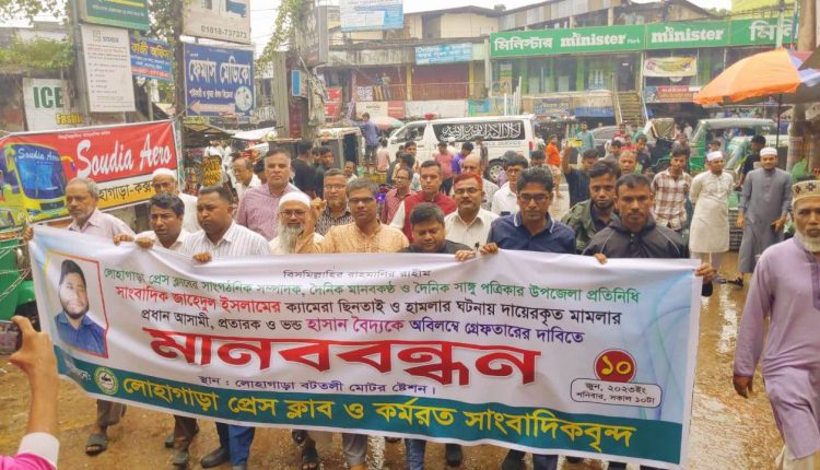 শনিবার (১০ জুন) সকাল ১১টায় লোহাগাড়া উপজেলা সদরের বটতলী মোটর স্টেশনস্থ চট্টগ্রাম-কক্সবাজার মহাসড়কে লোহাগাড়া প্রেস ক্লাবের উদ্যোগে এ সমাবেশ ও মানববন্ধন অনুষ্ঠিত হয়। মানববন্ধন ও সমাবেশ শেষে এক বিক্ষোভ মিছিল বটতলী মোটর স্টেশন প্রদক্ষিণ করেন।