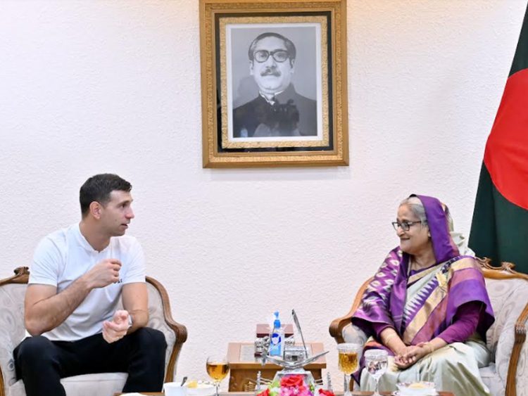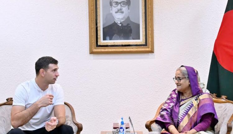 প্রধানমন্ত্রী শেখ হাসিনার সঙ্গে সৌজন্য সাক্ষাতে আর্জেন্টিনার বিশ্বকাপজয়ী গোলরক্ষক এমিলিয়ানো মার্টিনেজ বলেছেন, ফুটবলের প্রতি বাংলাদেশের মানুষের ভালোবাসা, বিশেষ করে বিপুল সংখ্যক আর্জেন্টিনা ফুটবল ভক্ত আছেন জেনে আমি আনন্দিত।