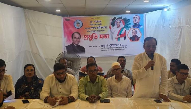 আসন্ন ২৮ অক্টোবর বঙ্গবন্ধু টানেল উদ্বোধন পরবর্তী জনসভা সফল করার লক্ষ্যে সাতকানিয়া উপজেলা আওয়ামী লীগের সভাপতি এবং উপজেলা পরিষদের চেয়ারম্যান ও সাতকানিয়া লোহাগাড়ার সাংসদ পদপ্রার্থী এম এ মোতালেব সিআইপির উদ্যেগে সাতকানিয়া ও লোহাগাড়া উপজেলা আওয়ামী লীগ, অঙ্গ ও সহযোগী সংগঠনের একটি প্রস্তুতি চট্টগ্রামস্থ বাসভবনে বৃহস্পতিবার অনুষ্ঠিত হয়েছে। সভায় উপস্থিত ছিলেন চট্টগ্রাম দক্ষিণ জেলা আওয়ামী লীগের দপ্তর সম্পাদক বিজয় কুমার বড়ুয়া,জেলা আওয়ামী লীগের সদস্য শহীুদুল কবির সেলিম, ডাঃ আ ম ম মিনহাজুর রহমান,