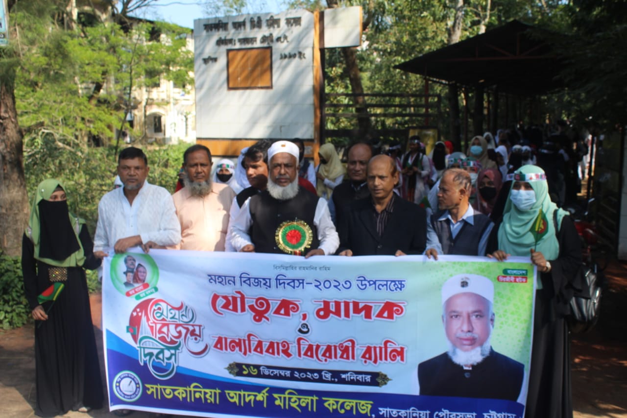 চট্টগ্রামের সাতকানিয়া আদর্শ মহিলা কলেজে ১৬ ডিসেম্বর শনিবার কলেজ মিলনায়তনে মহান বিজয় দিবস উপলক্ষে সাংস্কৃতিক প্রতিযোগিতা, আলোচনা সভা, যৌতুক, মাদক, ও বাল্যবিবাহ বিরোধী র্যালি অনুষ্ঠিত হয়েছে।