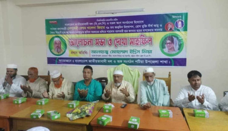 পটিয়ায় বিএনপি চেয়ারপার্সন বেগম খালেদা জিয়ার ৭৯ তম জম্ম বার্ষিকী, সাম্প্রতিক বৈষম্যহীন ছাত্র আন্দোলনে শহীদ ছাত্রদের স্মরণে দোয়া মাহফিল ও মোনাজাত অনুষ্ঠিত হয়।