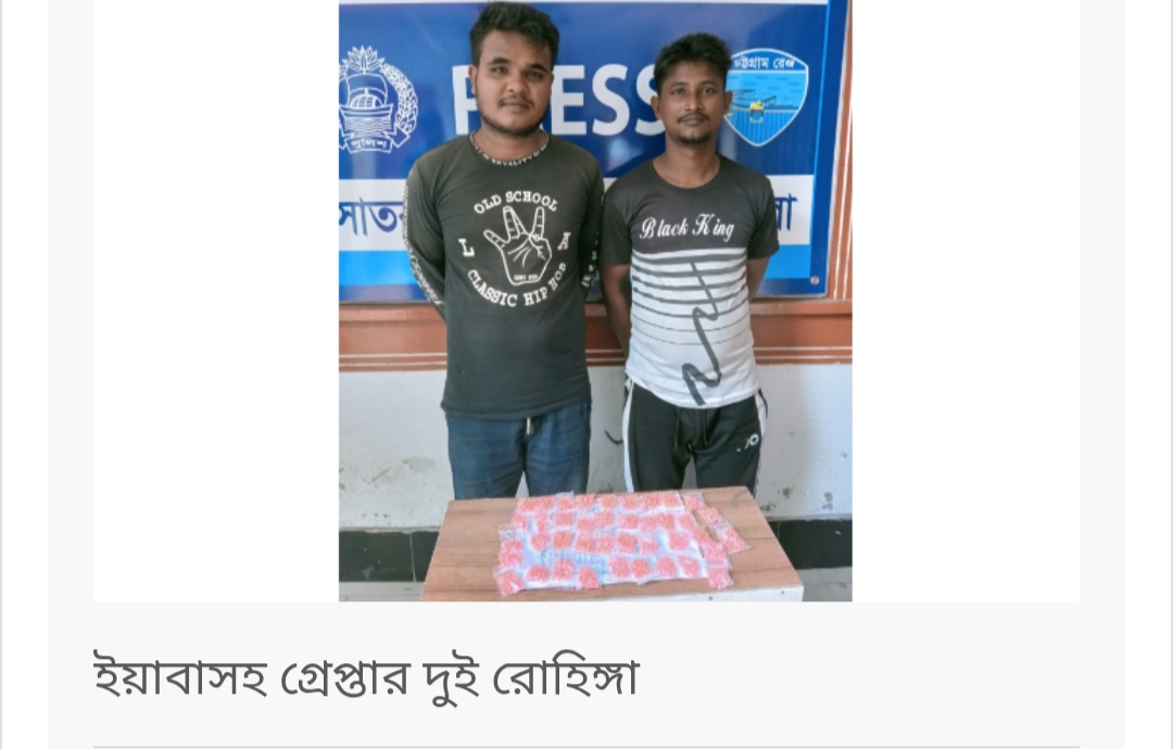 গ্রেপ্তারকৃত মাদককারবারীরা হলেন, কক্সবাজারের টেকনাফ উপজেলার লেদা রোহিঙ্গা শরণার্থী ক্যাম্পের ডি ব্লকের বাসিন্দা মৃত নুরুল ইসলামের ছেলে মো. জোবায়ের (৩০) এবং ওই ক্যাম্পের ই ব্লকের মো. সৈয়দের ছেলে নূর সৈয়দ (২০)।