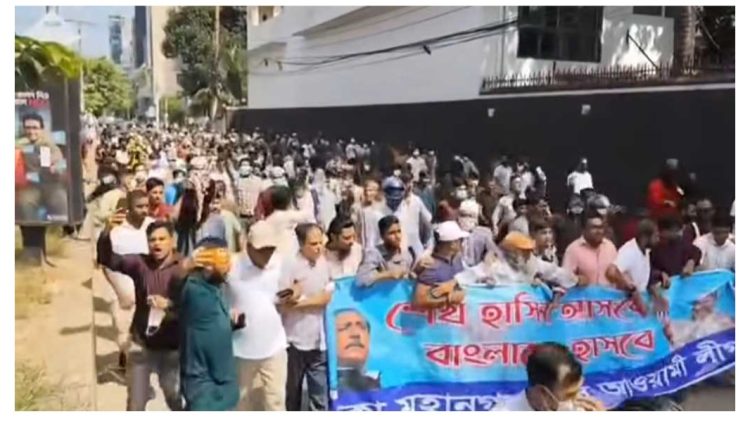 শুক্র দিকে তেজগাঁওয়ের নাবিস্কো এলাকায় মিছিলটি হয়েছে ঢাকা মহানগর উত্তর আওয়ামী লীগের ব্যানারে।