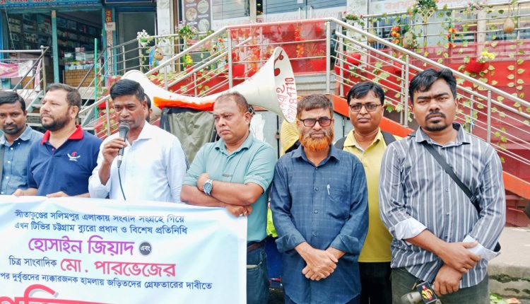 সীতাকুণ্ডের সলিমপুরে সংবাদ সংগ্রহ করতে গিয়ে এখন টেলিভিশনের চট্টগ্রাম ব্যুরো প্রধান হোসাইন জিয়াদ ও চিত্র সাংবাদিক পারভেজের ওপর হা’ম’লা’য় জড়িতদের গ্রেফতারের দাবিতে মিরসরাইয়ে প্র’তি’বা’দ সভা অনুষ্ঠিত হয়েছে। সোমবার (৬ অক্টোবর) দুপুরে ঢাকা-চট্টগ্রাম মহাসড়কের পাশে প্রেসক্লাব চত্ত¡রে এই কর্মসূচি পালন করেছেন সাংবাদিকরা।
