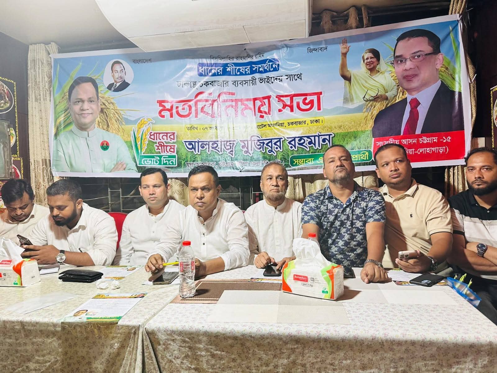 ঢাকাস্থ সাতকানিয়া’র ব্যবসায়ীদের নিয়ে ধানের শীষের সমর্থনে মতবিনিময় সভা অনুষ্ঠিত