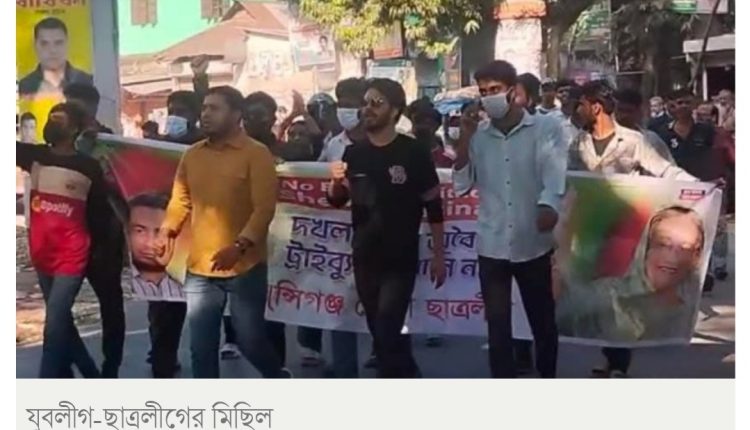 স্থানীয় সূত্র জানায়, নিষিদ্ধ ঘোষিত থাকলেও ছাত্রলীগের পাশাপাশি যুবলীগের বহু নেতাকর্মী মিছিলে অংশ নেন।
