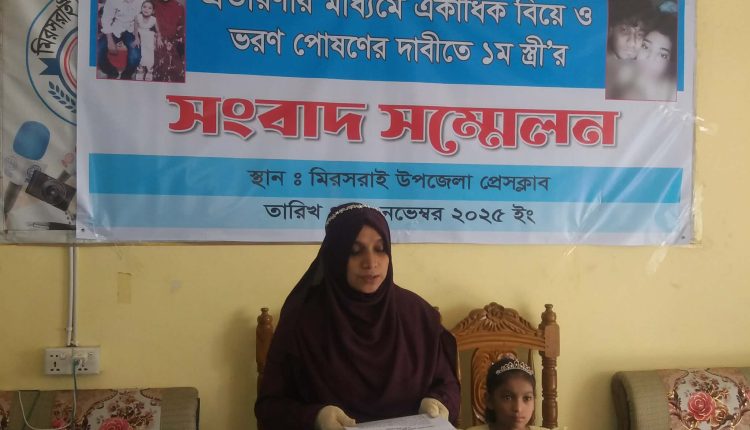 চট্টগ্রামের মিরসরাইয়ে প্রতারণার মাধ্যমে একাধিক বিয়ে ও স্ত্রী সন্তানের ভরণপোষণের দাবিতে সংবাদ সম্মেলন করেছে প্রথম স্ত্রী। আদালতে মামলা করেও পুলিশ আসামী গ্রেফতার না করায় তিনি ক্ষোভ প্রকাশ করেন। শনিবার সকালে মিরসরাই উপজেলা প্রেসক্লাবে অনুষ্ঠিত সংবাদ সম্মেলনে লিখিত বক্তব্য পাঠ করে এসব অভিযোগ করেন ভুক্তভোগী ৫ মাসের গর্ভবতী নারী ঝুমুর বেগম।