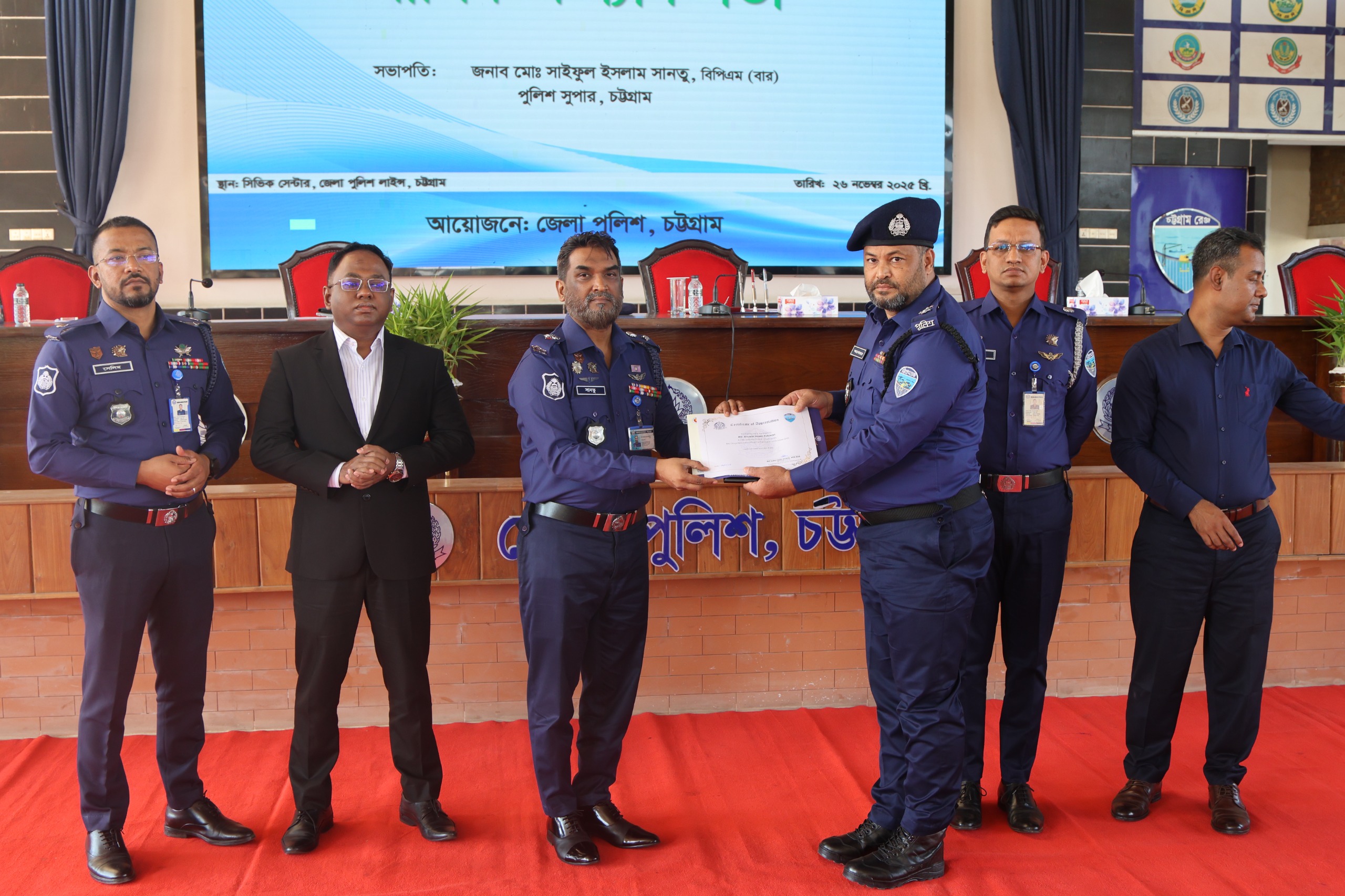 ২৬শে নভেম্বর (বুধবার)চট্টগ্রাম জেলা পুলিশ সুপার মো: সাইফুল ইসলাম সানতু পিপিএম বার এর হাত থেকে চট্টগ্রাম জেলা মাদক উদ্ধারকারী অফিসার হিসেবে নির্বাচিত হয়ে পুরস্কার গ্রহণ করেন।