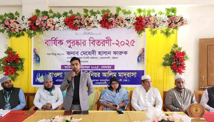 বোয়ালখালী হাওলা কুতুবিয়া সিনিয়র আলিম মাদ্রাসার বার্ষিক পুরস্কার বিতরণী অনুষ্ঠিত হয়েছে। সোমবার (৮ ডিসেম্বর) সকালে মাদ্রাসা মিলনায়তনে আয়োজিত অনুষ্ঠানে সভাপতিত্ব করেন মাদ্রাসার অধ্যক্ষ মাওলানা মুহাম্মদ আবদুর রহিম। সঞ্চালনা করেন উপাধ্যক্ষ মাওলানা মুহাম্মদ সোহাইল উদ্দিন আনসারী।