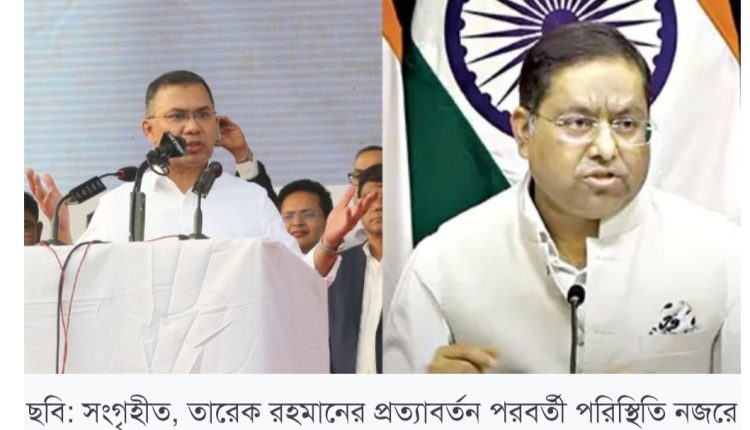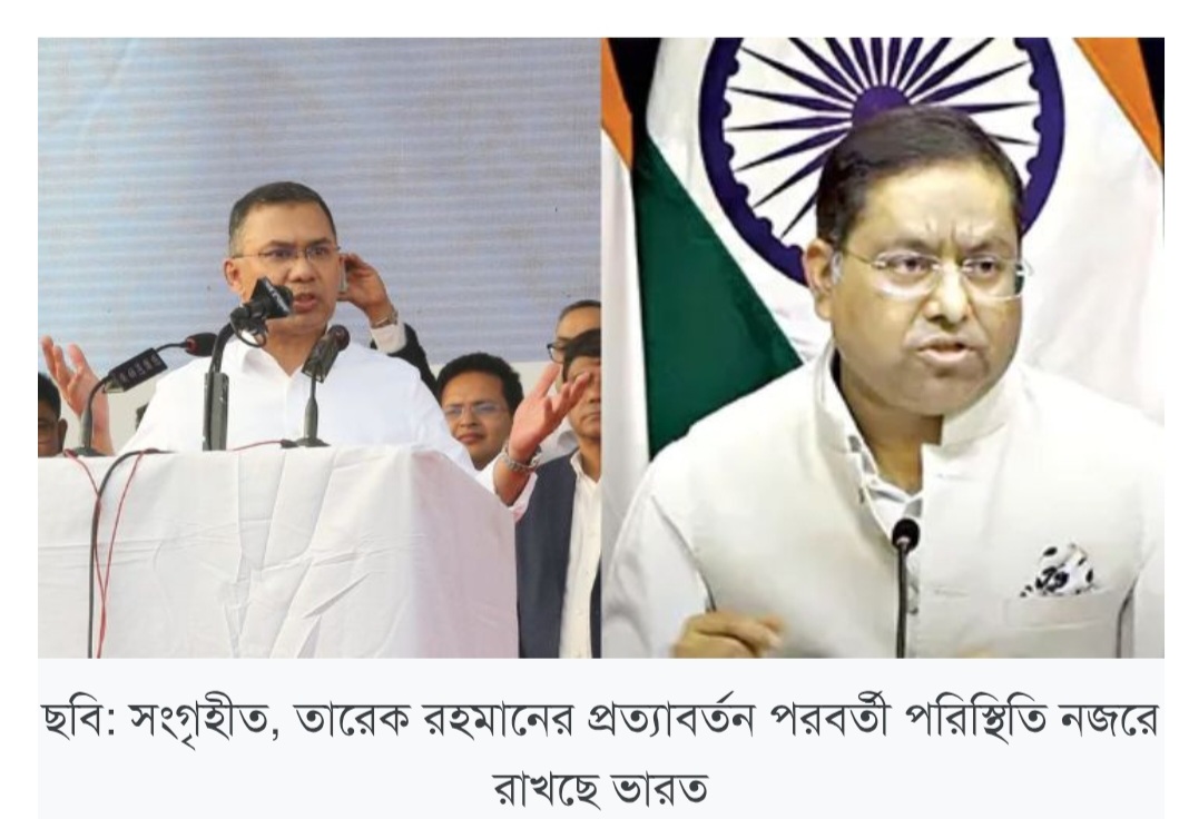 পররাষ্ট্র মন্ত্রণালয় জানিয়েছে, তারেক রহমানের দেশে ফেরার পর বাংলাদেশের রাজনৈতিক প্রেক্ষাপটে যে পরিবর্তনগুলো ঘটছে, ভারত তা গুরুত্বের সঙ্গে পর্যবেক্ষণ করছে। নির্বাচনের মাত্র কয়েক মাস আগে এই প্রভাবশালী রাজনৈতিক নেতার প্রত্যাবর্তনকে একটি বিশেষ ‘ডেভেলপমেন্ট’ হিসেবে দেখা হচ্ছে। ভারত মনে করে, সামগ্রিক রাজনৈতিক ও সামাজিক পরিবেশের ওপর এর প্রভাব সুদূরপ্রসারী হতে পারে।