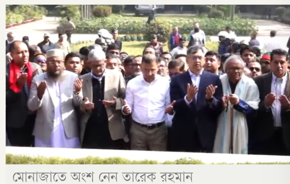 উল্লেখ্য, দীর্ঘ প্রবাস জীবন শেষে গত বৃহস্পতিবার দেশে ফেরেন তারেক রহমান। গতকাল শুক্রবার তিনি সাভারে জাতীয় স্মৃতিসৌধ এবং শেরেবাংলা নগরে বিএনপির প্রতিষ্ঠাতা জিয়াউর রহমানের কবর জিয়ারত করেন