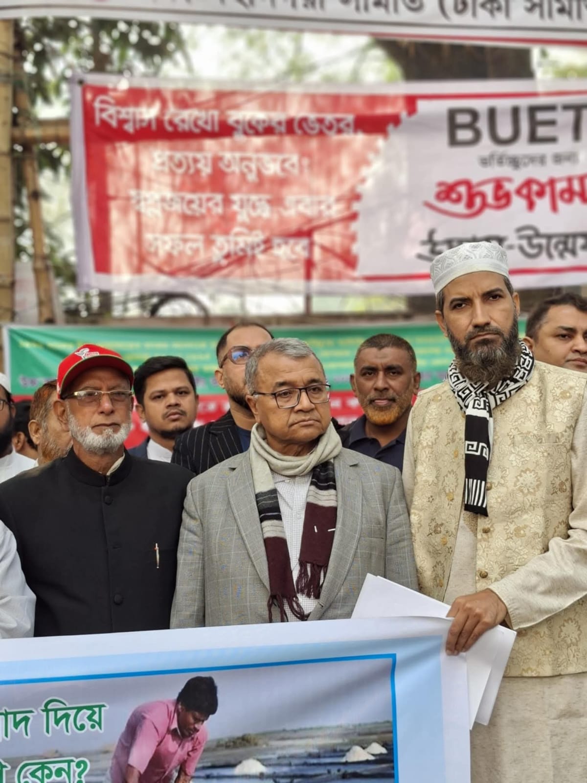 ঢাকার জাতীয় প্রেসক্লাবের সামনে মানববন্ধন: লবণ আমদানি স্থগিত, চাষিরা পেল স্বস্তি