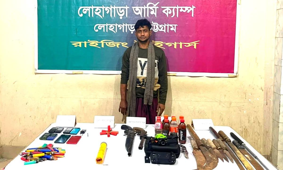চট্টগ্রামের লোহাগাড়ায় যৌথবাহিনীর অভিযানে অস্ত্র, গুলি, ড্রোন ও মদসহ এক যুবককে গ্রেফতার করা হয়েছে।