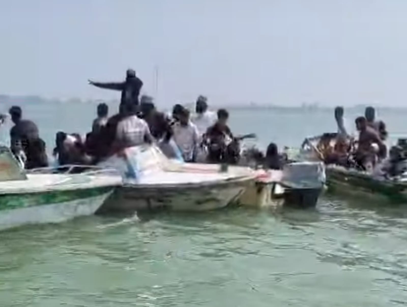 ঠিক সেই সময় পেছন দিক থেকে নিয়ন্ত্রণহীন গতিতে ছুটে আসা আরেকটি স্পিডবোট থেমে থাকা নৌযানটিকে সজোরে ধাক্কা দেয়। প্রচণ্ড সংঘর্ষে যাত্রীবাহী স্পিডবোটটি উল্টে যায়। নদীর বুকজুড়ে ছড়িয়ে পড়ে যাত্রীদের চিৎকার, ভাঙা নৌযান আর ছিটকে পড়া স্বপ্ন।
