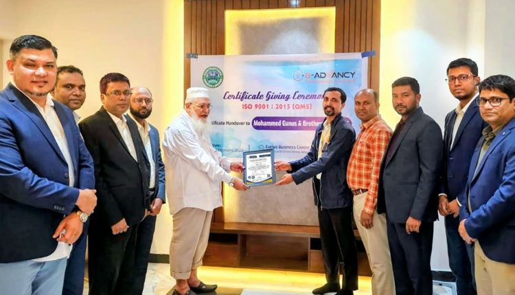 মোহাম্মদ ইউনুস এন্ড ব্রাদার্স(প্রা.) লি. এর দ্বিতীয়বার আন্তর্জাতিক ISO সনদ অর্জন