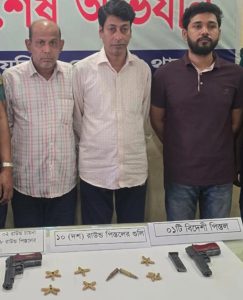 বায়েজিদ বোস্তামি থানার ওসি আবদুল করিম বলেন, ‘গোপন সংবাদের ভিত্তিতে ২টি বিদেশি পিস্তল ও গুলিসহ তিনজনকে গ্রেপ্তার করা হয়েছে। এ ঘটনায় অস্ত্র আইনে মামলা দায়ের করে গ্রেপ্তারকৃতদের আদালতে পাঠানো হয়েছে।’