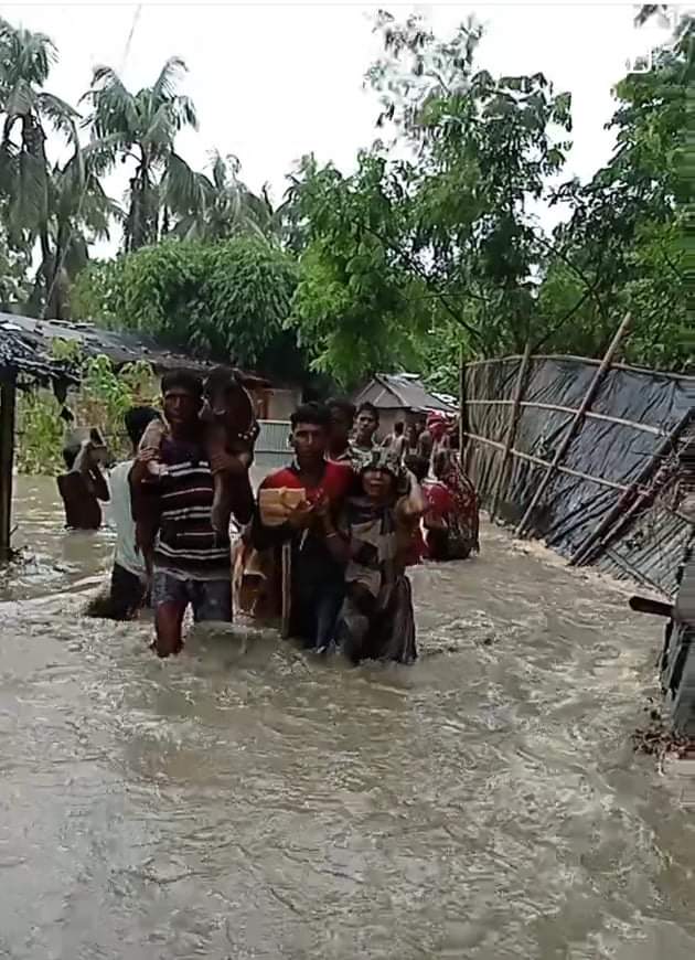 বেড়েছে। তার উপর পূর্নিমার কারণে স্বাভাবিক জোয়ারের চেয়ে সাগরের পানির উচ্চতা কয়েক ফুট বেড়েছে। এতে তার ইউনিয়নের পশ্চিম চর ধুরং, পূর্ব চর ধুরং, নয়াকাটা মিয়াজির পাড়া ও কুড়ার পাড়া গ্রামের বেড়িবাঁধ বিভিন্ন অংশ দিয়ে পানি ঢুকে পড়ে লোকালয় প্লাবিত হয়েছে। মানুষের ঘরবাড়ি ক্ষতিগ্রস্ত