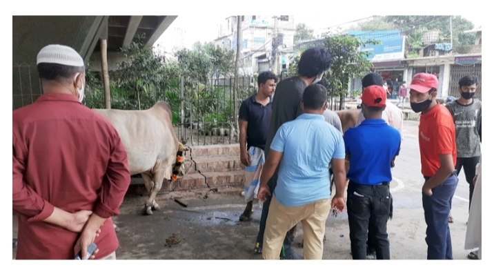 চট্টগ্রাম নগরের পাঁচলাইশের শুলকবহর মাদরাসা গেটের সামনে মহাসড়কের ওপরেই সাতটি গরু নিয়ে দাঁড়িয়েছেন সালামত আলী। তিনি এ গরুগুলো বিক্রি করবেন। আর এসব গরু কেনার উদ্দেশে দেখতে এসেছেন অর্ধশতাধিকের বেশি ক্রেতা।