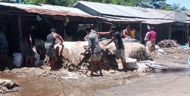 বৃহস্পতিবার (২২ শে জুলাই) উপজেলার চাতরী চৌমুহনী, বটতলী এবং মালঘর বাজারসহ বিভিন্ন হাট বাজার এবং চামড়ার গুদাম ঘুরে দেখা যায়,বিভিন্ন জায়গা থেকে আনা কুরবানির পশুর চামড়া পরিস্কার করে সেগুলোতে হাতে লবন মাখিয়ে স্তুপ করে রাখতে ব্যস্ত সময় পার করছে শ্রমিকরা।