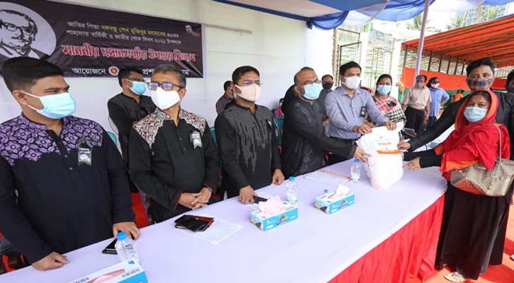 এ সময় ১ হাজার ৮৪৩ জন দরিদ্র ও অসহায় মানুষকে প্রধানমন্ত্রীর উপহার হিসেবে প্রত্যেকের হাতে তুলে দেয়া হয় ১০ কেজি চাল, ২ কেজি ডাল ও ১ কেজি তেল। আর রান্না করা খাবার বিতরণ করা হয় ১ হাজার ছিন্নমূল মানুষের মাঝে।